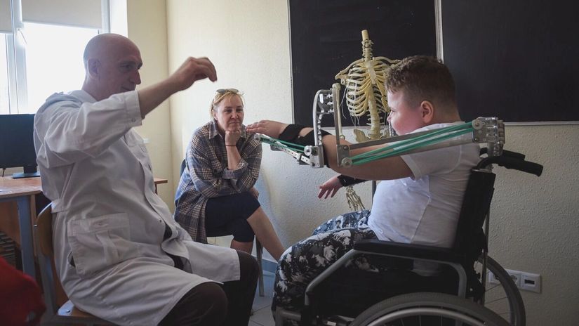— Данный прибор снимает весовую нагрузку с мышц. Ощущение, будто руки человека находятся в невесомости. Именно поэтому ребенок начинает совершенно спокойно ими двигать, — объясняет Федор Андрющенко.