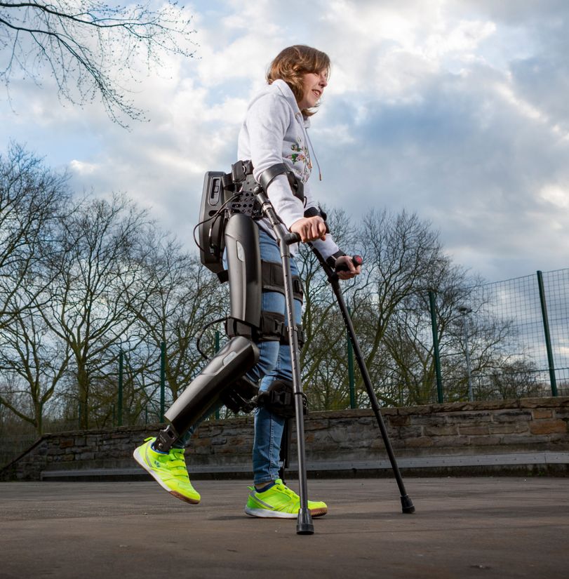 Экзоскелет Hybrid Assistive Limb от Cyberdyne создан для людей с нарушениями опорно-двигательной функции — например, после травм спинного мозга, инсульта, черепно-мозговых повреждений и других неврологических нарушений. Он использует неинвазивные сенсоры, которые считывают биоэлектрические импульсы с кожи ног, когда человек начинает ими двигать. Система интерпретирует эти сигналы как намерение начать движение и синхронизирует экзоскелет с усилием пользователя, например, при ходьбе, выпрямлении ног или удержании равновесия.