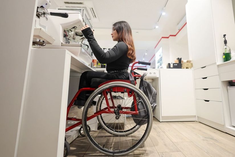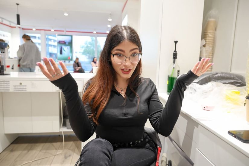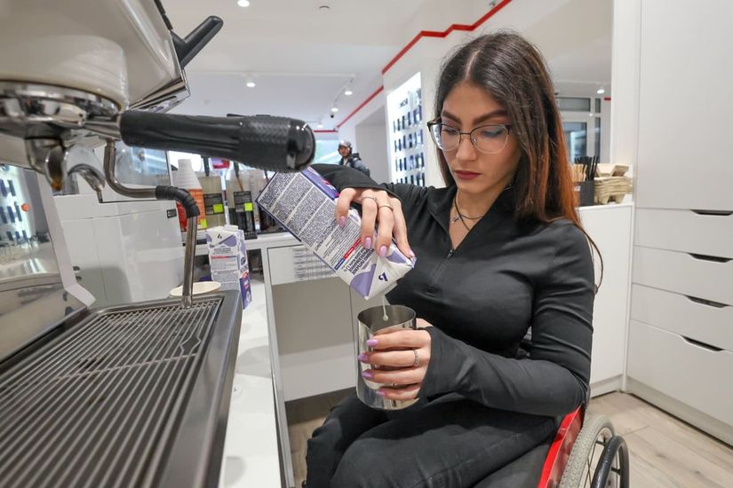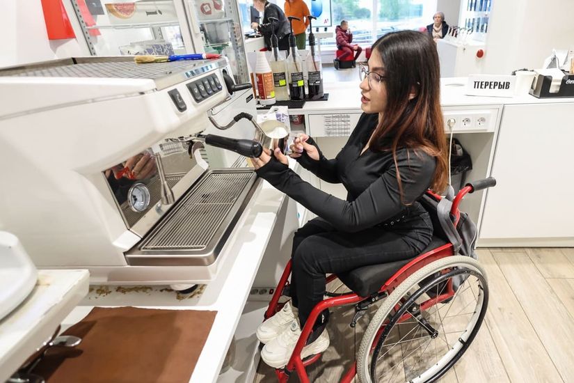 – Клиенты не сразу и понимают, что кофе готовит особенный человек. Девушки, наоборот, засыпают хвалой! – хохочет темноглазая Эвелина. – На работу я добираюсь сама. Папа до остановки довозит, а дальше автобусом. Либо сразу на такси. В приложении есть пункт «буду с инвалидным креслом», поэтому проблем никаких. Если с передвижением возникают трудности, люди понимают это и всегда помогают, – говорит Эвелина.